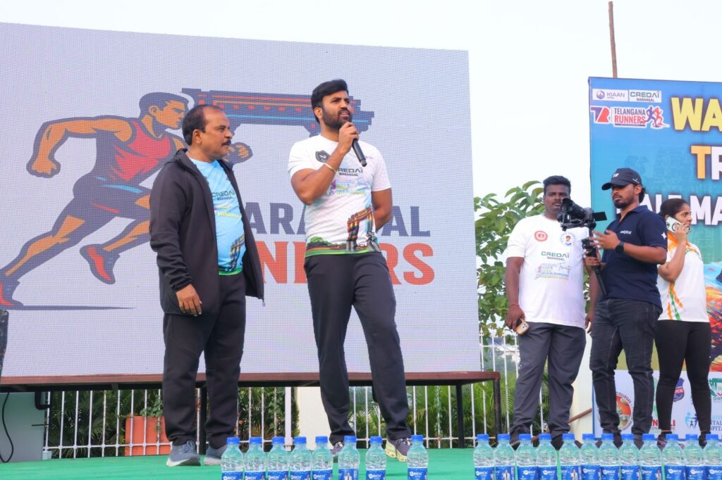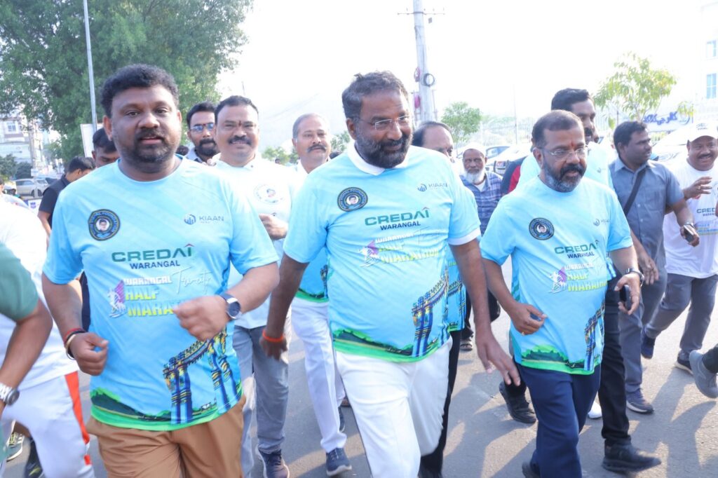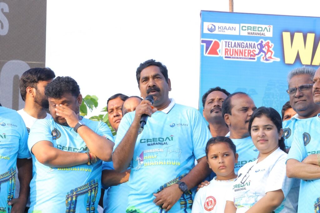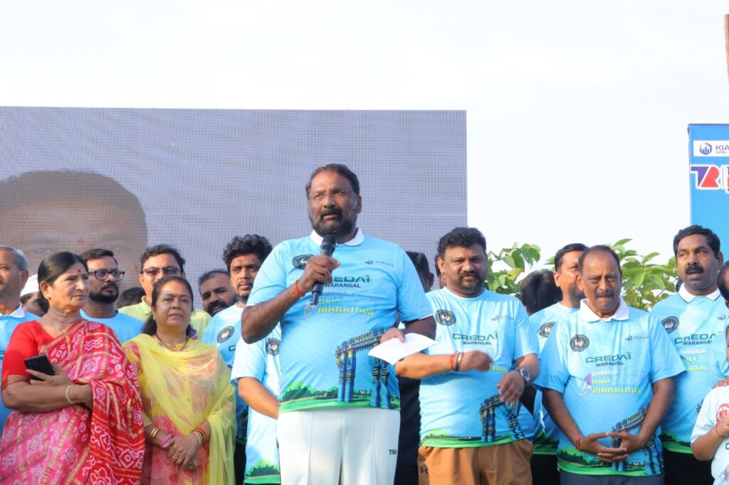 గ్రేటర్ న్యూస్,హనుమకొండ: రాష్ట్ర ప్రజలందరూ ఆరోగ్యంగా ఉండాలనే లక్ష్యంతో ప్రభుత్వం నూతన స్పోర్ట్స్ పాలసీని తీసుకొచ్చిందని రాష్ట్ర పశుసంవర్ధక, మత్స్య, పాడి పరిశ్రమ అభివృద్ధి, యువజన, క్రీడల శాఖ మంత్రి వాకిటి శ్రీహరి అన్నారు. క్రీడల పట్ల ప్రతి ఒక్కరూ ఆసక్తి పెంచుకోవాలని ఆయన పిలుపునిచ్చారు. ఆదివారం ఉదయం హనుమకొండలోని కాళోజి కళా క్షేత్రం వద్ద వరంగల్ ట్రైసిటీ హాఫ్ మారథాన్-2025 పోటీలను మంత్రి వాకిటి శ్రీహరి ముఖ్య అతిధిగా హాజరై ప్రారంభించారు. నాయిని విశాల్ ఫౌండేషన్, క్రెడాయి వరంగల్, తెలంగాణ రన్నర్స్, కియాన్ ఇన్ఫ్రా సంయుక్త ఆధ్వర్యంలో ఈ మారథాన్ను నిర్వహించారు.