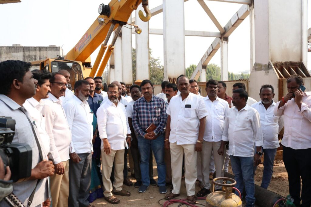 ఈ సందర్భంగా ఎమ్మెల్యే నాయిని మాట్లాడుతూ… మేడారం సమ్మక్క–సారలమ్మ జాతరను దృష్టిలో పెట్టుకొని ప్రజా రవాణాకు ఈ ROBను అందుబాటులోకి తీసుకురావాలనే ఉద్దేశంతో నిధులను సత్వరమే మంజూరు చేసి పనులు ప్రారంభించామని తెలిపారు. అయితే అన్ని ప్రయత్నాలు చేసినప్పటికీ కొన్ని అనివార్య కారణాల వల్ల పనుల్లో కొంత జాప్యం చోటు చేసుకున్నట్లు చెప్పారు.ప్రధానంగా ఈ బ్రిడ్జి రైల్వే శాఖ పరిధిలో ఉండటం, నిర్మాణానికి అవసరమైన భారీ పరికరాలు ఇతర రాష్ట్రాల నుంచి తీసుకురావాల్సి రావడం వల్ల ఆలస్యం జరిగిందని వివరించారు. అయినప్పటికీ రైల్వే అధికారులతో నిరంతరం సంప్రదింపులు కొనసాగిస్తూ, సమస్యలను పరిష్కరిస్తూ పనులను ముందుకు తీసుకెళ్తున్నామని తెలిపారు.రానున్న అతి కొద్ది కాలంలోనే కాజీపేట ROB నిర్మాణ పనులను పూర్తి చేసి ప్రజలకు అందుబాటులోకి తీసుకురావడమే లక్ష్యంగా పనిచేస్తున్నామని ఎమ్మెల్యే నాయిని స్పష్టం చేశారు. మేడారం జాతరకు ఉమ్మడి వరంగల్ జిల్లాతో పాటు వివిధ జిల్లాల నుంచి భారీ సంఖ్యలో భక్తులు తరలివచ్చే నేపథ్యంలో, వారికి ఎలాంటి ట్రాఫిక్ అంతరాయాలు లేకుండా చర్యలు తీసుకుంటున్నామని అన్నారు.నగర నలువైపులా ఉన్న బ్రిడ్జిల పనులను వేగంగా పూర్తి చేయడానికి ఎమ్మెల్యేలందరం సమిష్టిగా కృషి చేస్తున్నామని, ప్రజల సౌకర్యమే తమ ప్రధాన లక్ష్యమని పేర్కొన్నారు. ఉమ్మడి వరంగల్ జిల్లాలో ట్రాఫిక్ సమస్యలు లేకుండా సమర్థవంతమైన ప్రణాళికతో ముందుకు వెళ్తున్నామని తెలిపారు.ఇప్పటికే రోడ్లు భవనాల శాఖ అధికారులతో కలిసి నిట్ కాలేజీ నుంచి హంటర్ రోడ్డు వరకు రోడ్డు వెడల్పు ప్రక్రియను ప్రారంభించామని, ఈ పనులు పూర్తైతే నగరంలో రాకపోకలు మరింత సులభతరం అవుతాయని ఎమ్మెల్యే నాయిని తెలిపారు.