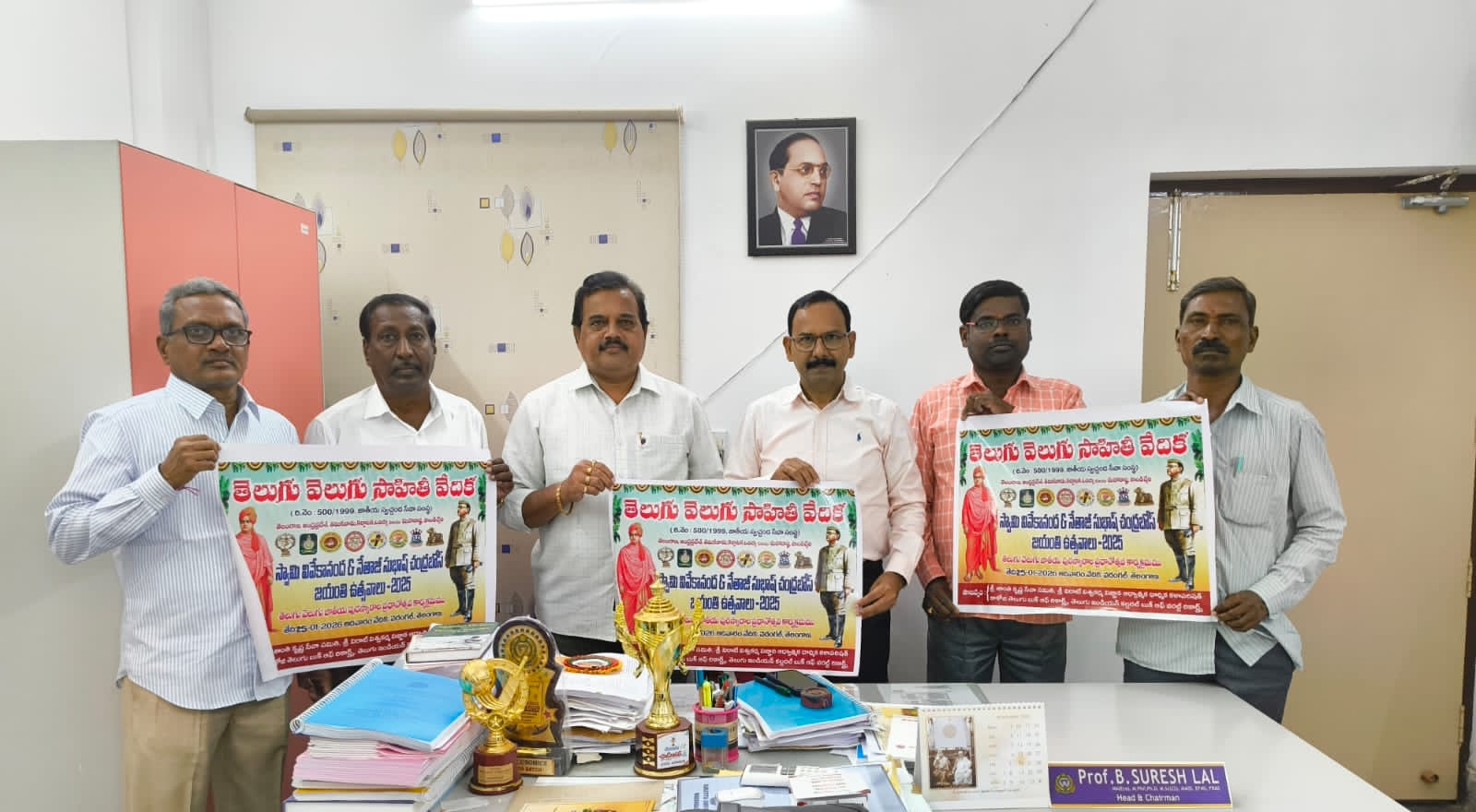 గ్రేటర్ న్యూస్,హనుమకొండ:తెలుగు వెలుగు సాహితీ వేదిక ఆధ్వర్యంలో జనవరి 25న నిర్వహించనున్న స్వామి వివేకానంద, నేతాజీ సుభాష్ చంద్రబోస్ జయంతి ఉత్సవాల ప్రచార పోస్టర్ ను కాకతీయ విశ్వవిద్యాలయం పాలకమండలి సభ్యులు,సోషల్ సైన్సెస్ డీన్ ఆచార్య బి సురేష్ లాల్ తెలుగు వెలుగు సాహితీ వేదిక రాష్ట్ర అధ్యక్షులు డాక్టర్ పొడిచెట్టి విష్ణువర్ధన్ తో కలిసి ఆవిష్కరించారు. గురువారం విశ్వవిద్యాలయంలోని అర్ధశాస్త్ర విభాగంలో పోస్టర్ ఆవిష్కరణ కార్యక్రమం జరిగింది. ఈ సందర్బంగా సురేష్ లాల్ మాట్లాడుతూ తెలుగు వెలుగు సాహితీ వేదిక స్వచ్చంద సంస్థ ఆధ్వర్యంలో స్వామి వివేకానంద,సుభాష్ చంద్రబోస్ లాంటి మహనీయుల జయంతి ఉత్సవాలను నిర్వహించాలనే సంకల్పం గొప్పదన్నారు. సంస్థ ఆధ్వర్యంలో పలు సామాజిక కార్యక్రమాలు నిర్వహించడం అభినందనీయమని నిర్వాహకులను కొనియాడారు. సురేష్ లాల్ ను సంస్థ బాధ్యులు ఘనంగా సన్మానించారు. ఈ కార్యక్రమంలో తెలుగు వెలుగు సాహితీ వేదిక చైర్మన్ పోలోజు రాజ్ కుమార్,వేముల తిరుపతి రెడ్డి,జోనగోని యాదగిరి గౌడ్,సుద్దాల విద్యాసాగర్ తదితరులు పాల్గొన్నారు.
