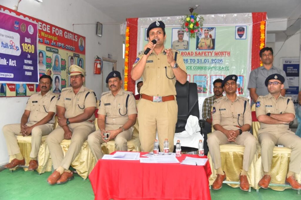 గ్రేటర్ న్యూస్, వరంగల్ క్రైం : ప్రతి వాహనదారుడు ట్రాఫిక్ నిబంధనలను పాటిస్తూ క్షేమంగా గమ్యస్థానాలకు చేరుకోవడమే మనందరి లక్ష్యంగా మార్చుకోవాలని వరంగల్ పోలీస్ కమిషనర్ సన్ ప్రీత్ సింగ్ పిలుపునిచ్చారు. జాతీయ రోడ్డు భద్రత మాసోత్సవాలను పురస్కరించుకోని నగర ప్రజలకు ట్రాఫిక్ నిబంధనలతో పాటు హెల్మెట్ ప్రాదాన్యతపై అవగాహన కల్పించడం కోసం వరంగల్ ట్రాఫిక్ పోలీసుల అధ్వర్యంలో శుక్రవారం బైక్ ర్యాలీని ఏర్పాటు చేసారు.ఈ కార్యక్రమానికి వరంగల్ పోలీస్ కమిషనర్ ముఖ్య అతిధిగా ర్యాలీ ప్రారంభించిన అనంతరం పోలీస్ కమిషనర్ సైతం అధికారులు,సిబ్బందితో కలసి హెల్మెట్లను ధరించి బైక్ ర్యాలీ పాల్గోన్నారు. వరంగల్ పోలీస్ కమిషనరేట్ పరేడ్ మైదానం నుండి ప్రారంభమైన హన్మకొండ చౌరస్తా, ములుగు రోడ్, యం.జి.యం, పోచమ్మమైదానంలోని ఎస్.ఆర్ కళాశాల వరకు కొనసాగింది. అనంతరం విధ్యార్థులతో ఏర్పాటు చేసిన సమావేశంలో సీపీ మాట్లాడుతూ… దేశ వ్యాప్తంగా ప్రస్తుతం జరుగుతున్న రోడ్డు ప్రమాదాలు పెద్ద సమస్యగా మారిందని, ముఖ్యంగా ఈ ప్రమాదాలు వాహనదారులు ట్రాఫిక్ నిబంధనలు పాటించక పోవడమే కారణరమవుతోందని అన్నారు . ప్రధానంగా హత్యలు కన్నా రోడ్డు ప్రమాదాల కారణంగా మరణించిన వారి సంఖ్య అధికమని. పోలీసులు, ప్రభుత్వాల చర్యల వల్ల కొద్ది వరకు రోడ్డు ప్రమాదాలను నివారించగలం కాని వాహనదారులు తమ వ్యక్తిగత బాధ్యతగా భావించి ట్రాఫిక్ నిబంధనలను పాటించడం అవలంబిస్తే ప్రస్తుతం జరిగే రోడ్డు ప్రమాదాలకు చెక్ పెట్టగలమని తెలిపారు, గత ఏడాది వరంగల్ పోలీస్ కమిషనరేట్ పరిధిలో జరిగిన రొడ్డు ప్రమాదాల కారణంగా 450కు పైగా మృత్యువాత పడ్డారని, అలాగే తోమ్మిది లక్షల మంది వాహనదారులకు హెల్మెట్ ధరించని కారణంగా జరిమానాలు విధించడం జరిగిందని తెలిపారు. ముఖ్యంగా మద్యం సేవించి వాహనం నడపటం కారణంగా వాహదారునితో పాటు ఇతరులు సైతం రోడ్డు ప్రమాదాలకు గురవుతున్నారని. ప్రతి వాహన దారుడు హెల్మెట్ ధరించాలని, మైనర్లను వాహనాలను అందజేయవద్దని సూచించారు, కారు నడిపే సమయంలో తప్పని సరిగా సీట్ బెల్ట్ ధరించడంతో ఇతర ట్రాఫిక్ నిబంధనలను పాటిస్తూ సురక్షితంగా మీ ఇండ్లకు చేరుకోవాలని, రోడ్డు భద్రతతో పాటు, ప్రస్తుత రోజుల్లో మత్తుపదార్థాల, సైబర్ నేరాలు సైతం ప్రస్తుతం మనందరి ముందు పెద్ద సమస్యని, యువత మత్తు పదార్థాల జోలికి పోవద్దని సూచించారు. వాటిని వినియోగించడం ద్వారా భవిష్యత్తు అంధకారంగా మారుతుందని, ఎవరైనా మత్తు పదార్థాలు వినియోగించిన, విక్రయించిన పోలీసులకు సమచారం ఇవ్వాలని, అలాగే సైబర్ నేరాల పట్ల ప్రతి ఒక్కరు అప్రమత్తం ఉండలని, తప్పుడు ప్రకటనలు, ఉచితాలు, ఉద్యోగాలు, లక్కీడ్రా, డిజిటల్ అరెస్టులను ప్రజలు నమ్మవద్దని, ఎవరైన సైబర్ నేరానిక