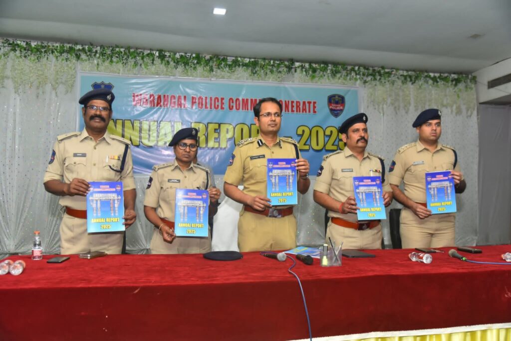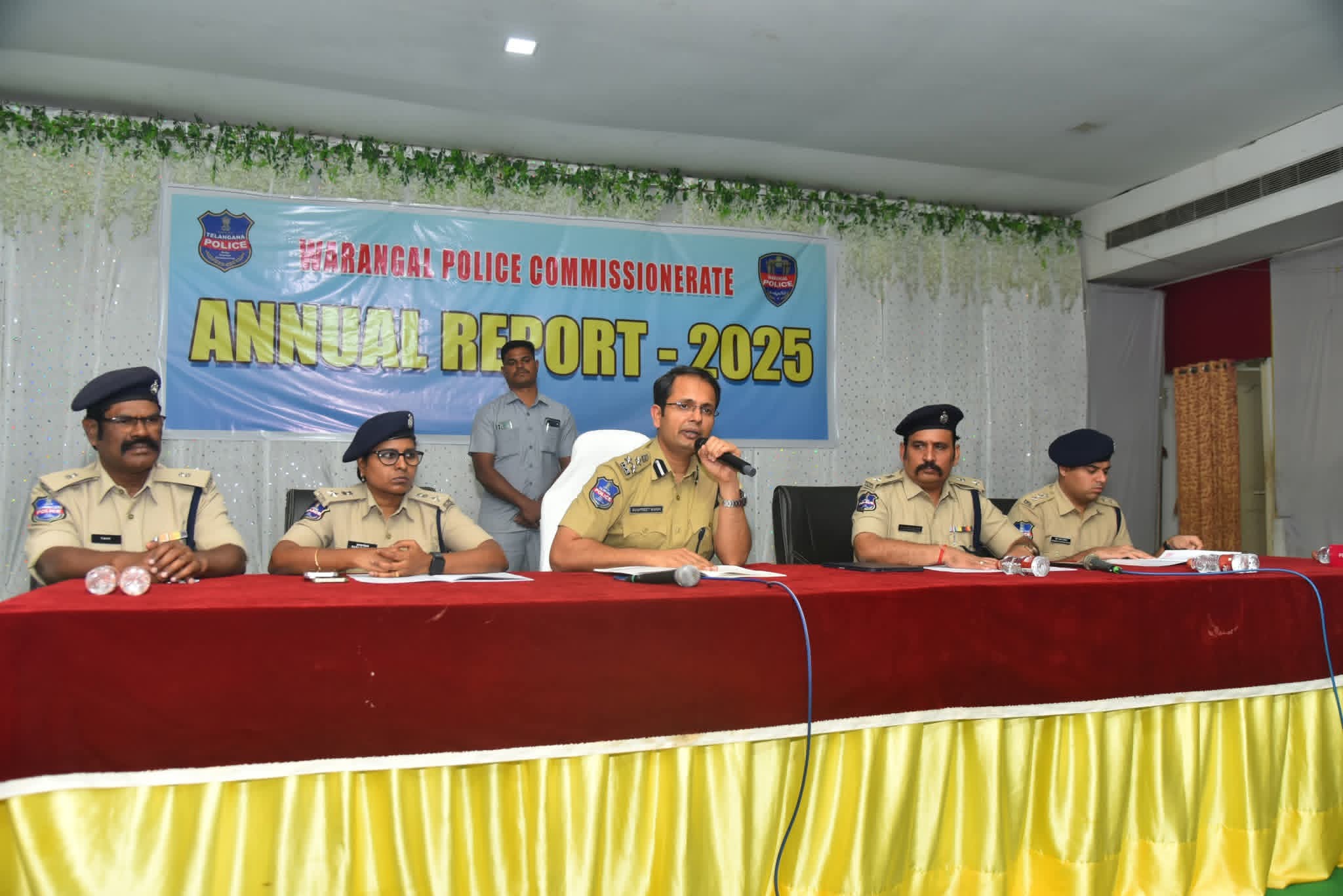 గ్రేటర్ న్యూస్, వరంగల్ క్రైం : వరంగల్ పోలీస్ కమిషనరేట్ పరిధిలో అధికారులు, సిబ్బంది సమన్వయంతో పనిచేయడంతో నియంత్రణలో నేరాలు వున్నాయని వరంగల్ పోలీస్ కమీషనర్ సన్ ప్రీత్ సింగ్ తెలిపారు. శనివారం భీమారంలోని శుభం కళ్యాణ వేదికలో వరంగల్ పోలీస్ కమీషనరేట్ వార్షిక నివేదిక 2025 సమావేశాన్ని సీపీ ఏర్పాటు చేసారు. ఈ సందర్బంగా శాంతి భద్రతలకు సంబంధించి నివేదికలోని సీపీ వివరాలను వెల్లడిస్తూ గత ఏడాదితో పోలిస్తే 0.53 శాతం స్వల్పంగా నేరాల పెరిగిందని గత ఏడాది 14,412 కేసులు నమోదు కాగా ప్రస్తుత సంవత్సరం 2025 లో 14,456 కేసులు నమోదు కావడం జరిగిందని నమోదు అయిన నేరాల్లో హత్య చేసిన దోపిడి కేసులు 4, దారి దోపిడీ 3, దోపిడిలు 16 కేసులు, దొంగతనాలు 355 కేసులు నమోదు కాబాడ్డాయి. హత్యలు 36, మానభంగాలకు సంబంధించి గత ఏడాది 145 కేసులు నమోదు కాగా ప్రస్తుతం సంవత్సరంలో 132 కేసులు నమోదు కాబడ్డాయని వీటితో పాటు వరకట్న మరణాలు, డొమెస్టిక్ నేరాలు, తగ్గు ముఖం పట్టగా, పోక్సో కేసులు గత ఏడాది 364 కేసులు నమోదు కాగా, ఈ ఏడాది 405 కేసులు నమోదు కాబడ్డాయని సీపీ తెలిపారు.మహిళలపై నేరాలు తగ్గు ముఖం: గత ఏడాదితో పోలిస్తే 1504 కేసులు నమోదు కాగా, ప్రస్తుతం కేవలం 1453 కేసులు మాత్రమే నమోదు కావడం జరిగిందన్నారు. దీనితో మొత్తం మీద 3.6శాతం మహిళలపై నేరాలు తగ్గు ముఖం పట్టాయని