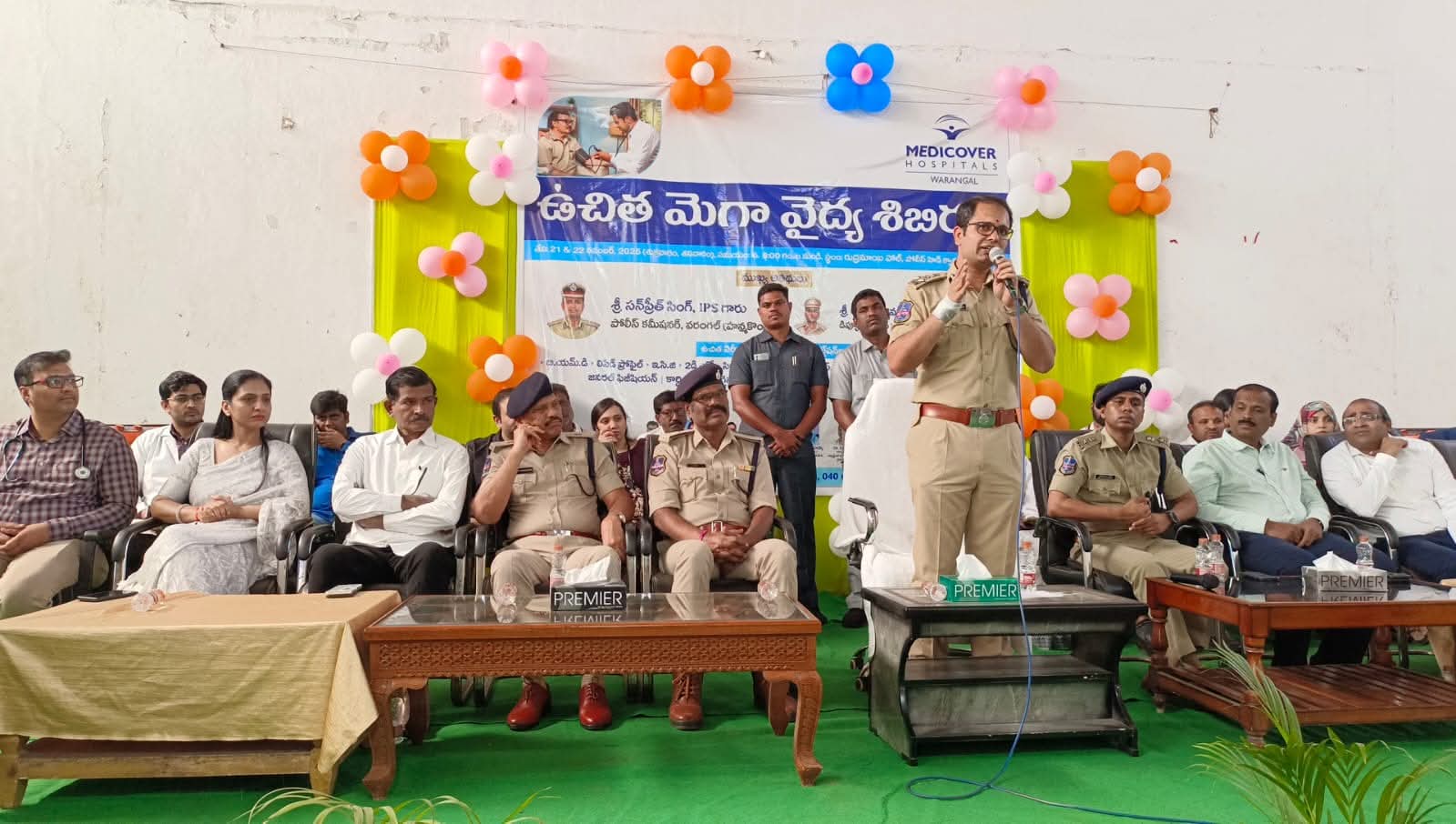 గ్రేటర్ న్యూస్,హనుమకొండ క్రైం :శాంతి భద్రతల పరిరక్షణకై నిరంతరం శ్రమించే పోలీసులు తమ వ్యక్తిగత ఆరోగ్యంతో పాటు తమ కుటుంబ సభ్యుల ఆరోగ్యం పట్ల శ్రద్ద చూపాలని వరంగల్ పోలీస్ కమీషనర్ సన్ ప్రీత్ సింగ్ ఐపీఎస్ తెలిపారు.వరంగల్ మెడికవర్ హాస్పటల్ సహకారంతో వరంగల్ పోలీస్ కమీషనరేట్ కార్యాలయంలో ఏర్పాటు చేసిన ఉచిత వైద్య శిబిరాన్ని వరంగల్ పోలీస్ కమీషనర్ శుక్రవారం ప్రారంభించారు. నిరంతరం విధి నిర్వహణకై అంకితమైన పోలీసులతో పాటు వారి కుటుంబ సభ్యుల ఆరోగ్య పరిరక్షణలో భాగంగా ఏర్పాటు చేసిన ఈ ఉచిత వైద్య శిబిరంలో కార్డియాలజిస్ట్, ఆర్థోపెడిక్, గైనకాలజిస్ట్, నెఫ్రాలజిస్ట్, ఫిజిషియన్, న్యూరాలజిస్ట్ గాస్ట్రోఎంటరాలజిస్ట్ విభాగాలకు చెందిన వైద్య నిపుణులచే ఈ శిబిరానికి తరలి వచ్చిన పోలీసులు వారి కుటుంబ సభ్యులకు వైద్య పరీక్షలు చేపట్టడంతో పాటు వైద్యుల సూచనల మేరకు అవసరమైన వారికి BMD టెస్ట్ (బోన్ మినరల్ డెన్సిటీ),లిపిడ్ ప్రొఫైల్), ECG (ఎలక్ట్రోకార్డియోగ్రామ్),2D ఈకో, LFT టెస్ట్ (లివర్ ఫంక్షన్ టెస్ట్),GRBS (రాండమ్ బ్లడ్ షుగర్),CBP (కంప్లీట్ బ్లడ్ పిక్చర్)లాంటి వైద్య నిర్వహించారు. ఈ సందర్బంగా పోలీస్ కమిషనర్ మాట్లాడుతూ పోలీసులు ఆరోగ్యంగా వున్నప్పుడే సమాజానికి మెరుగైన సేవలు అందించగలరని, ఆరోగ్య పరిరక్షణ కోసం పోలీసులు ఆరోగ్య పరీక్షలకై సమయాన్ని కేటాయించాలని రెండు రోజుల పాటు నిర్వహించబడే ఈ శిబిరాన్ని పోలీసులు, వారి కుటుంబ సభ్యులు సద్వినియోగం చేసుకోవాలని సూచించారు. ఉచిత మెగా వైద్య శిబిరం ఏర్పాటు చేసిన మెడికవర్ యాజమాన్యం తో పాటు ఇందులో పాల్గొన్న వైద్య నిపుణులు, సిబ్బంది కి పోలీస్ కమిషనర్ కృతజ్ఞతలు తెలియజేసారు. ఈ సందర్బంగా హన్మకొండ సెంట్రల్ మెడిసిన్ స్టోర్స్ నుండి సుమారు 5 లక్షల విలువైన మందులను అందచేశారు…