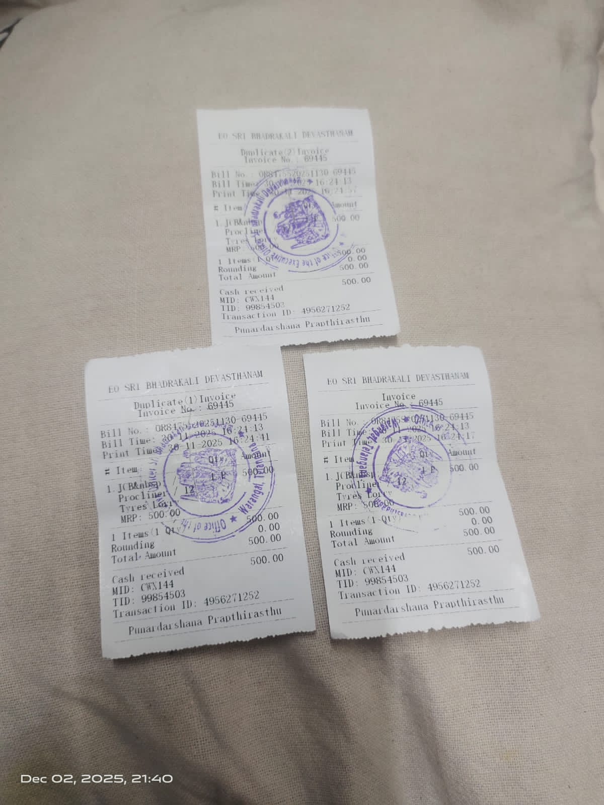 శ్రీ భద్రకాళీ దేవస్థానంలో నకిలీ టికెట్లు… ఇద్దరు సస్పెండ్…
