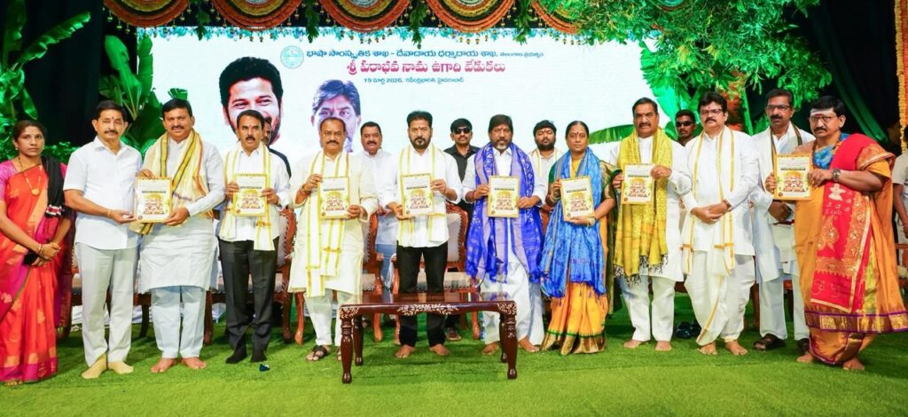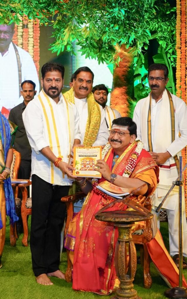 ✅ ఈ సందర్బంగా శ్రీ పరాభవ నామ ఉగాది పంచాంగాన్ని ముఖ్యమంత్రి రేవంత్ రెడ్డి ఆవిష్కరించారు. ప్రకృతి వైపరీత్యాలు రాకుండా ప్రజలు సుఖశాంతులతో వర్థిల్లాలని ఈ సందర్భంగా భగవంతుడిని ప్రార్థించారు. ఈ నెల 22న రైతు భరోసా అందించబోతున్నామని తెలియజేస్తూ రైతులకు శుభాకాంక్షలు తెలియజేశారు.